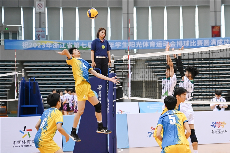 本报讯 浙江省第七届青少年学生阳光体育运动会排球比赛,昨天下午在舟山开赛(见图)。接下来,来自各地市35支代表队的600余名运动员将参加历时10天的赛事。