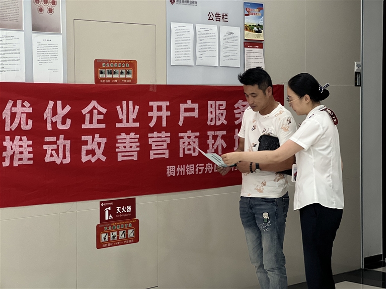 为进一步优化营商环境,更好服务实体经济,近日,浙江稠州商业银行舟山分行开展优化企业开户服务宣传活动,企业可通过客户经理上门预约开户,大幅缩短办理时间。