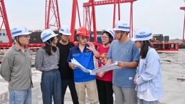 昨天下午,嵊泗县洋山镇青年党员走访洋山海工基地等重点项目建设工地,感受“八八战略”给洋山带来的发展变化。