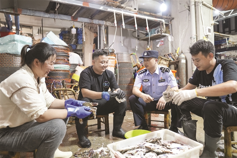 今年以来,水产派出所将770家服务对象划分为楼宇经营户、干品市场商户等7个群体,建立治理“微网格”,牵头组建由市场监管、城管、金融办等组成的“安防问诊团”,开展“健康体检”“律师助企”等活动。还借力嗨创青年电商、东海渔嫂家庭创业联盟等6大党群组织,协同出口、渔运等5类行业协会,成立“海枫义警”群防群治队伍,并推动以“季联席、月例会”形式定期研讨商企难题。在水产城商会设立调解委员会,引入“共享法庭”,联动各职能部门协同参与矛盾纠纷调处。今年以来,矛盾纠纷当场处置率在95%以上,通过“共享法庭”调处复杂纠纷成功率达94.7%,通过“安防问诊团”协调解决商户困难68次,满意率100%。