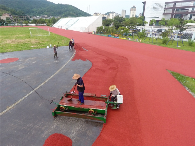 连日来,趁着晴好天气,普陀区六横镇峧头初级中学田径场提升改造工程加紧推进。