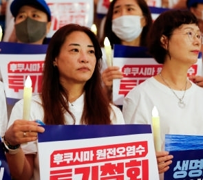 8月23日,在韩国首尔的国会议事堂前,韩国最大在野党共同民主党举行集会抗议日本政府决定启动核污染水排海 新华社记者 王益亮 摄