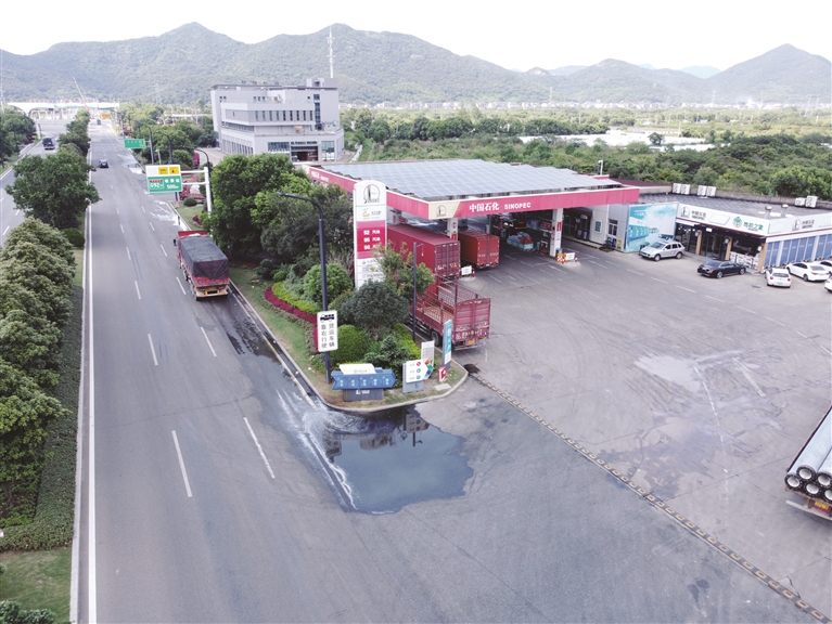 大片的路面海鲜污水也让加油站的员工直呼“臭死了”。其中一名加油站工作人员向记者表示,海鲜运输车开进加油站,有的一路滴漏,有的直接“开闸放水”,他们每天都要对场站进行冲刷清洗,否则臭味令人难以忍受。
