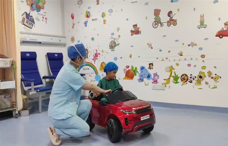 走进舟山医院儿科住院部,一位小朋友正开心地开着玩具小汽车去接受治疗(见图)。“对于孩子而言,入院治疗本质上是不太舒服的体验,通过这个方法可以缓解紧张情绪。”舟山医院相关负责人介绍,该院还在住院部走廊添加了儿童扶手,让孩子可以扶着走动。