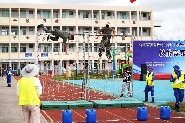 本报讯 全市首届乡镇(街道)综合性应急救援队伍技能竞赛,昨天上午在普陀勾山小学操场举行。