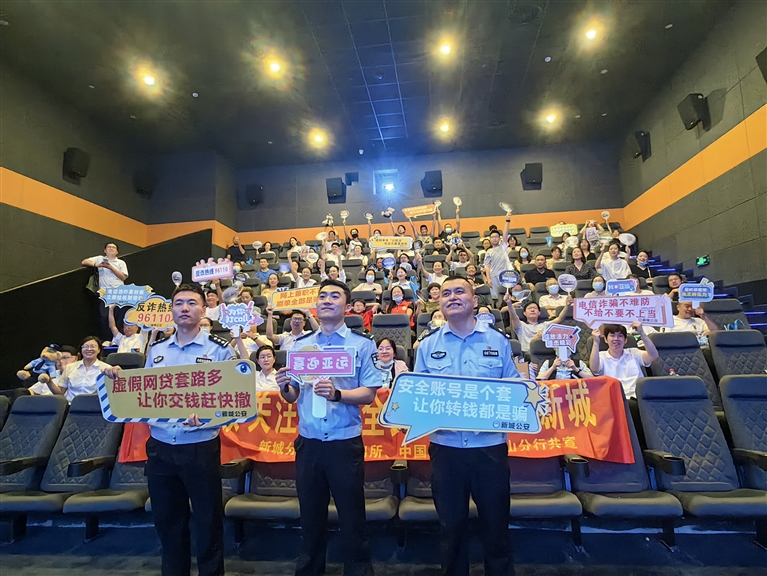 近日,民生银行舟山分行联合新城公安分局千岛派出所共同在影院开展《孤注一掷》观影活动,该活动邀请新城14名社区干部、20名市民同步参与反诈宣传。派出所民警以身边案例着手开展问答,为“反诈小能手”送上“反诈大礼包”。