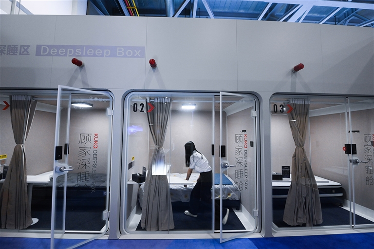 这是主媒体中心的睡眠舱服务区(9月1日摄) 新华社记者 徐昱 摄