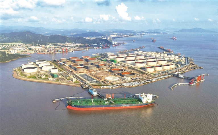 日前,马耳他籍油轮“海后星”在位于宁波舟山港岑港港区的外钓油品应急储运有限公司30万吨级公共油品码头上接卸原油。据了解,该公司今年1-8月累计接卸超大型油轮65艘,接卸原油1793.11万吨,原油接卸量同比增长17.88%。 摄影 记者 陈永建