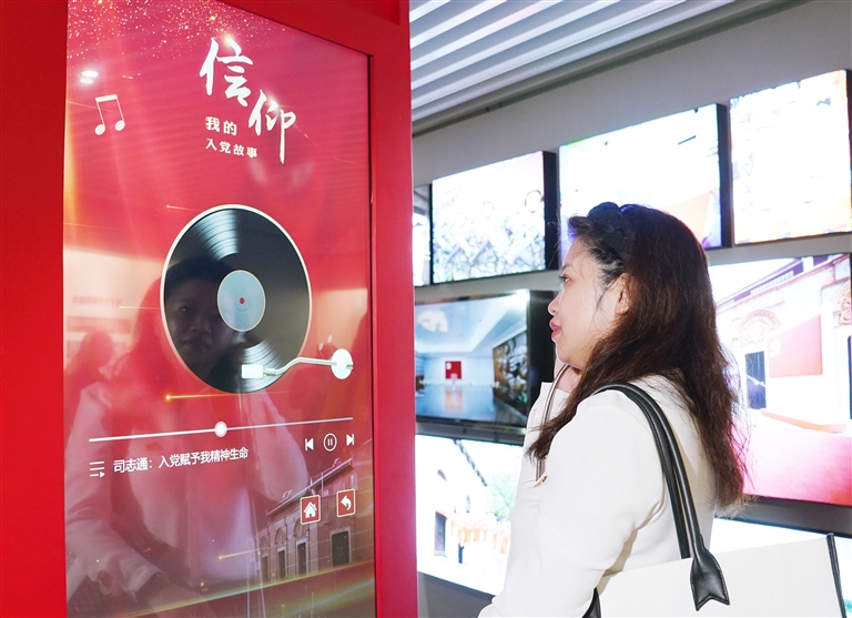 9月11日,参观者通过多媒体装置聆听普通党员讲述自己的入党故事。