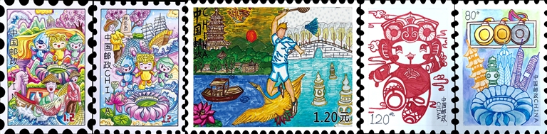 近日,记者走进城西小学美术教师办公室,看到一张张由学生绘制的邮票绘画作品整齐地摆放在桌案上,亚运会吉祥物琮琮、莲莲、宸宸,东海云廊、渔民、渔船、桃花岛等元素,生动地呈现在不同的作品中。