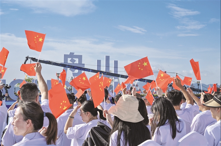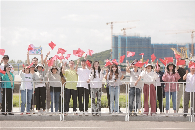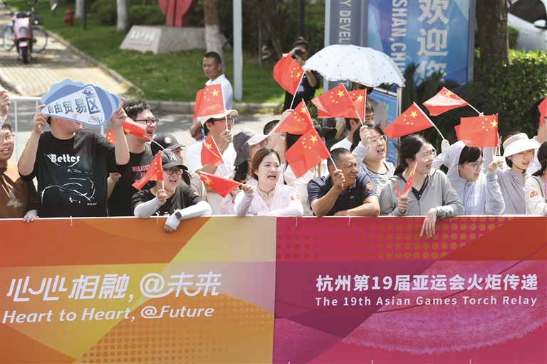 热情群众观看杭州亚运会火炬传递舟山站活动