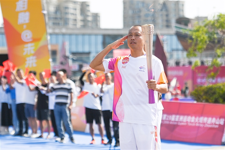 “能成为舟山站的火炬手,我深感骄傲和自豪,这份荣誉不仅代表我个人,也代表着罗家岙派出所这个光荣的集体,更代表着守护万家灯火安宁的我市公安全体民(辅)警。”9月13日,在杭州第19届亚洲运动会火炬传递舟山站活动中,岱山罗家岙派出所所长张立镇接受采访时如是说。他表示,未来还会继续真心实意为海岛群众办实事、解难事,他和罗家岙派出所全体民(辅)警将一起秉承“心中唯有群众重”的初心,锚定首善目标,以细致精致极致的工作作风,持续深化夏季治安打击整治行动,守护平安辖区,为平安护航亚运贡献“公安力量”。