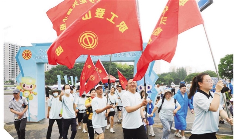 舟山市总工会、定海区总工会联合举办“全民迎亚运 职工展风采 齐心奔共富”千名职工健步走活动