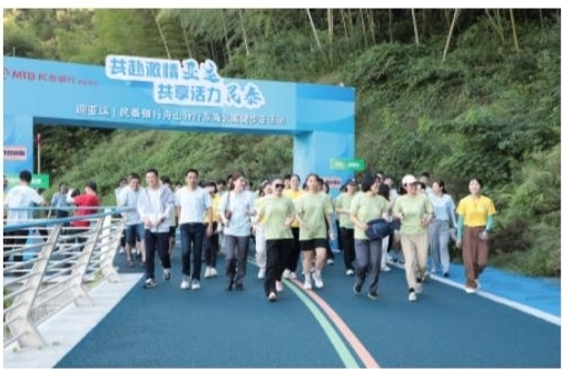 为迎接第19届杭州亚运会,营造全民健身良好氛围,近日,民泰银行舟山分行组织员工开展“共赴激情亚运 共享活力民泰”东海云廊健步走活动。