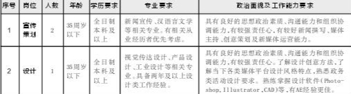 舟山市传媒集团有限公司因事业发展需要,面向社会公开招聘3名工作人员(集团公司聘),具体要求如下: