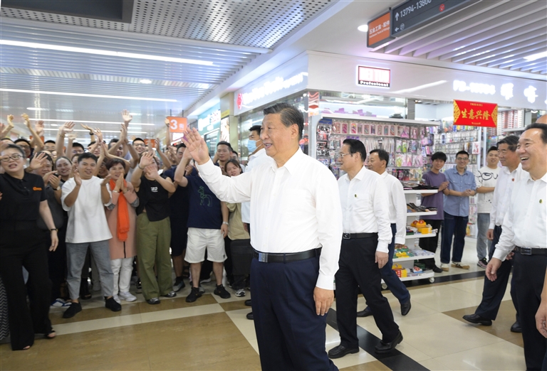 新华社浙江杭州/山东枣庄9月25日电 中共中央总书记、国家主席、中央军委主席习近平近日在浙江考察时强调,要完整准确全面贯彻新发展理念,围绕构建新发展格局、推动高质量发展,聚焦建设共同富裕示范区、打造新时代全面展示中国特色社会主义制度优越性的重要窗口,坚持一张蓝图绘到底,持续推动“八八战略”走深走实,始终干在实处、走在前列、勇立潮头,奋力谱写中国式现代化浙江新篇章。