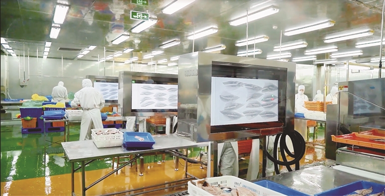 兴业公司无刺鱼片生产线上,工人通过透视设备检查产品情况 受访公司供图