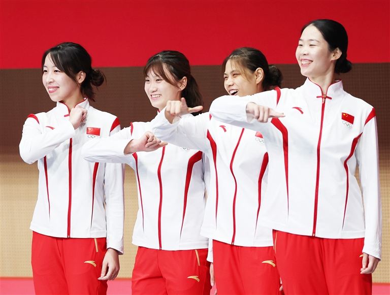 9月28日,冠军中国队在领奖台上。当日,在杭州亚运会击剑项目女子团体花剑比赛中,中国队获得冠军,韩国队获得亚军,中国香港队和日本队获得季军。新华社记者 杨磊 摄