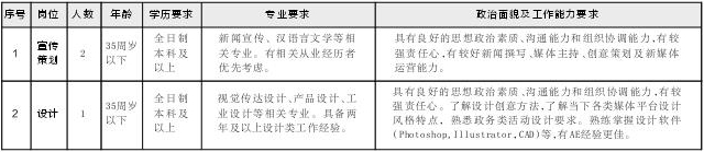 舟山市传媒集团有限公司因事业发展需要,面向社会公开招聘3名工作人员(集团公司聘),具体要求如下: