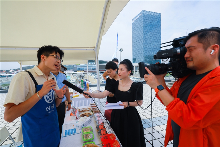“请”进来,亦要“游”出去。不光要吸引食客走进各类特色海鲜餐厅打卡,品尝舟山美味,本次线上东海开渔节还邀请网红大咖化身推广大使,通过各大平台推广宣传,让更多人认识舟山海鲜、了解舟山海鲜、爱上舟山海鲜。值得一提的是,在9月16日当天,10多万人次通过“竞舟”APP、“竞舟新闻”视频号、“竞舟新闻”抖音号、“每日舟山”视频号等平台同步直播开渔节现场。这其中,向海集市暨优质商家线上推介环节,由线上东海开渔节推广大使、舟山籍网络主播“小岛玛丽”和市新闻传媒中心主播联合直播,让广大网友“一饱眼福”。