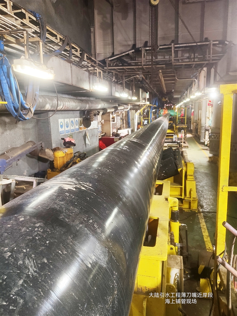 大陆引水工程薄刀嘴近岸段铺管现场 嵊泗县供图