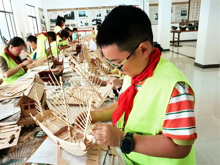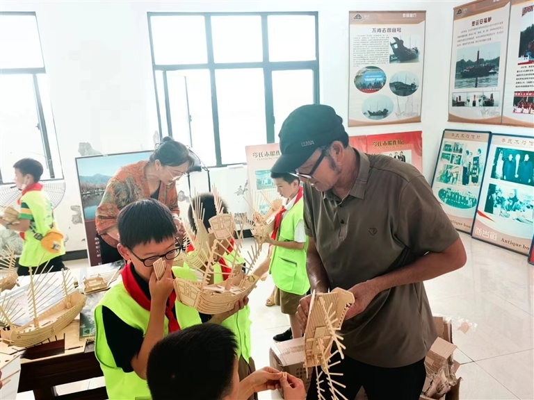 “普陀船模”省级非遗工坊让孩子们拼船模
