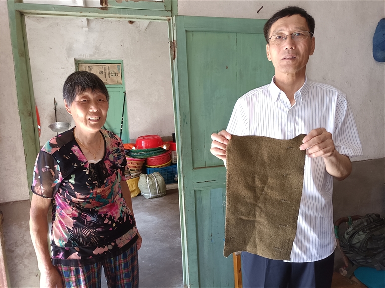 既然是一件具有重大意义的历史事件,吴布跃希望能有更多的人知道爷爷的故事。所以当他得到梁银娣的委托时,立即开始在家中寻找港币和大衣做成的鞋垫,只可惜这两样东西在数次搬家中,都没了踪影,但他记得,那件大衣剩余的布料应该还完好地保留在庙子湖的老家中,于是立即买票从沈家门赶回了庙子湖的老家,令人欣慰的是,原来的那块布真的还在箱子底静静地等候着重见这一天。