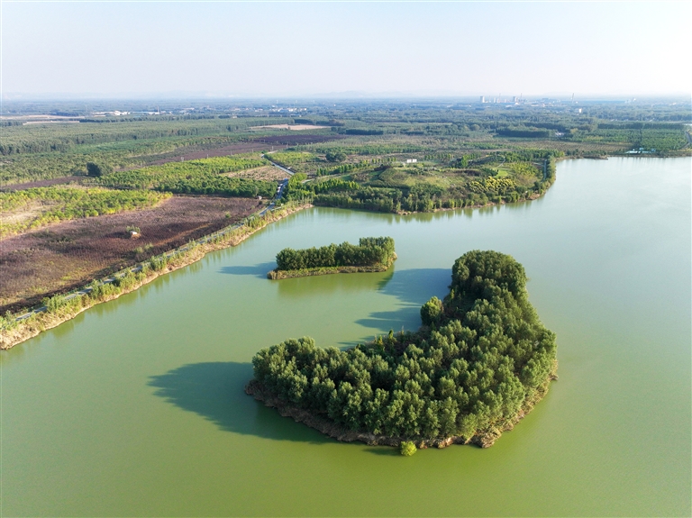 近年来,位山灌区积极探索黄河下游沉沙池区泥沙高地覆淤还耕技术,化解泥沙清淤弃土对生态环境产生的影响,变泥沙为沃土良田。灌区还因地制宜大力开展植树绿化。当地按照“政府政策性主导、社会多元化投资、产业市场化运作、突出水文化特色”的生态治理模式,建成了沉沙池区一期旅游项目位山黄河公园,周边村庄也实现了从“遍地流沙、生活贫困”到“绿水青山、金山银山”的蝶变。 新华社记者 邢广利 摄