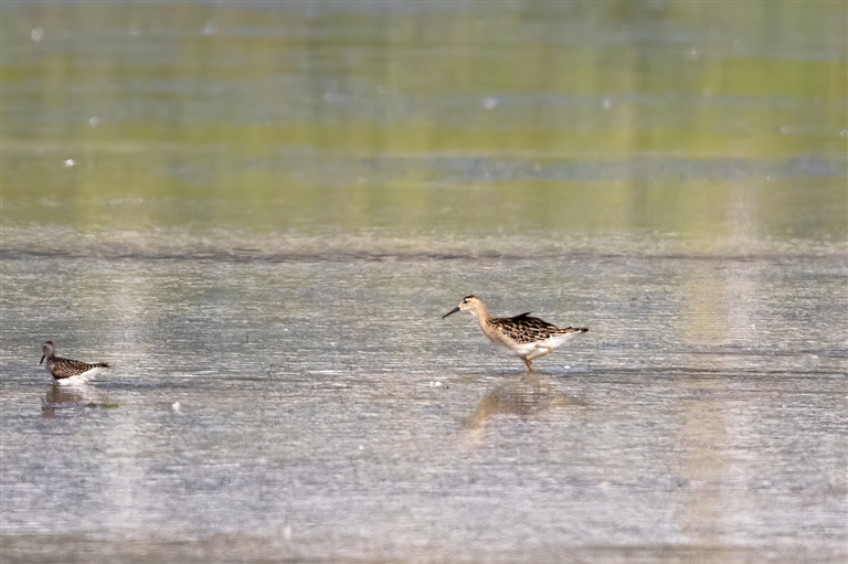“先后共发现两只流苏鹬,它们当时正在一处围垦区与青脚鹬、斑尾塍鹬‘混居’。”姜慎龙告诉记者,流苏鹬数量稀少,但喜欢“热闹”,会和部分其他鹬类混群。