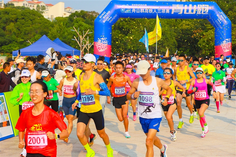 昨天下午,“舟山群岛铁人三项赛青山跑”在朱家尖景区举行。1000余名来自全国各地的跑步爱好者沿着10公里赛道,饱览山海美景,纵情挥洒汗水。