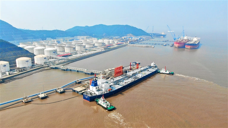 该泊位于去年2月18日开工建设,克服大风、大雾天气等诸多不利因素影响,抢抓工期,于今年3月完成交工验收备案,并完成验收对外启用。“这个泊位的正式启用,对生产经营有着很大的促进作用。公司的仓储、接卸及装运能力进一步提升。”浙江海港中奥能源有限责任公司副总经理姚红滨介绍,该泊位年吞吐量预计超500万吨,将进一步提升宁波舟山港的成品油接卸能力,增强该区域国际航行船舶燃供服务,助力世界一流强港建设。