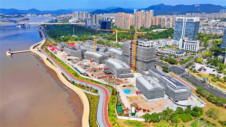 航拍下,建设中的新城滨海城市带“欢乐海湾”项目B地块9幢建筑已结顶,目前处于主体建筑外立面幕墙施工阶段。据了解,该项目B地块建设规模为44699平方米,将打造成集文旅、休闲、餐饮、酒店于一体的滨海商业综合体。连日来,该项目工地200名建设者正加班加点施工,确保项目在2024年6月份完工。摄影 记者 陈永建 通讯员 张静