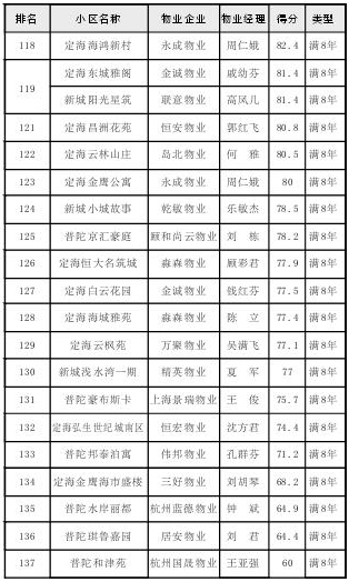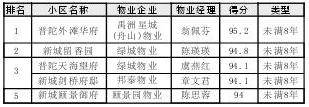 全市中心城区物业服务质量考评结果按三类分类排名,每类排名前15%及后15%的居民小区及物业企业名单公布如下。
