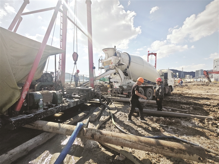 “二期项目遵循先地下后地上的原则,目前还在打桩阶段,根据工程计划,我们将完成工程桩130根、维护桩370多根,以及部分高压旋喷桩。”定海湾区改造指挥部相关负责人说,争取明年5月完成地下空间建设后,尽快启动地上部分建设。