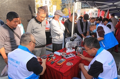 如何让老年人更舒心、安心地养老?现场,近20家养老机构在展位区进行展示,部分机构还提供免费入住体验名额和精美礼品。此外,活动现场的小家电维修、反诈宣传、中医问诊等特色志愿服务,也受到老人的追捧。