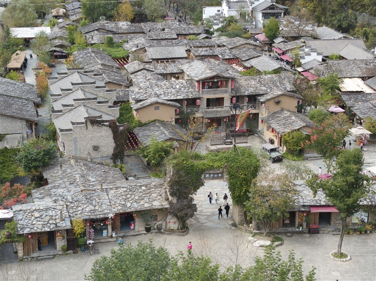 朱家湾村终南山寨民俗文化村(10月21日摄,无人机照片)。