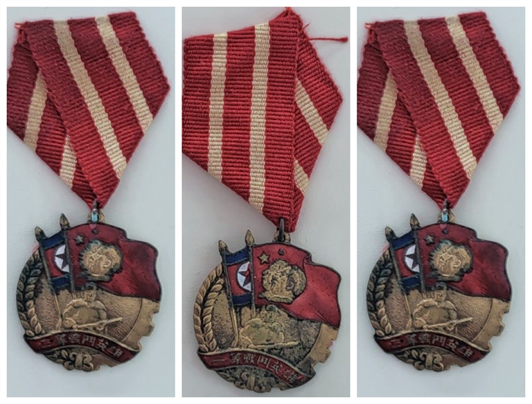 抗美援朝战争时期,中国人民志愿军同朝鲜军民并肩战斗,共同赢得了战争的伟大胜利。为表彰英雄、模范,朝鲜政府制作了奖章,并委托中国人民志愿军领导机关授予在战斗或工作中有立功者。其中还有朝鲜民主主义人民共和国颁赠志愿军的军功证书。金星奖章是抗美援朝战争中,中国人民志愿军获得的朝方最高级别的勋章。志愿军中仅有获得朝鲜民主主义人民共和国英雄称号的12个人获得。