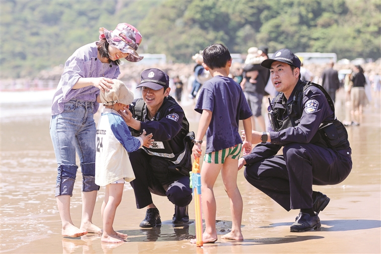 今年以来,普陀山公安深耕新时代海上“枫桥经验”,主动融入景区管理服务“5+1”模式,以“全域是景区、全警为旅游”为定位,持续深化旅游警务,让游客更安心,让交通更畅通,让景区更和谐,全力守护游客的“诗和远方”。