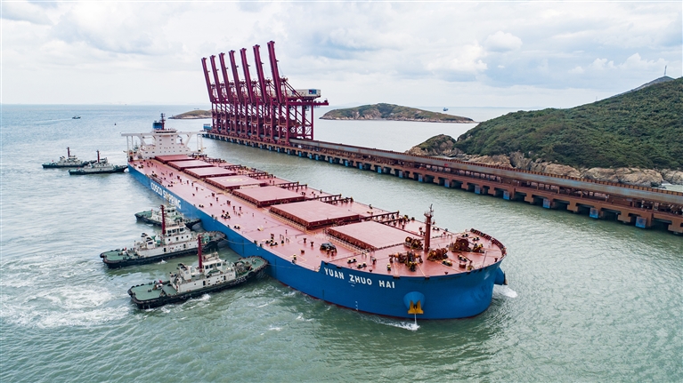 40万吨矿船靠泊宁波舟山港鼠浪湖矿石中转码头