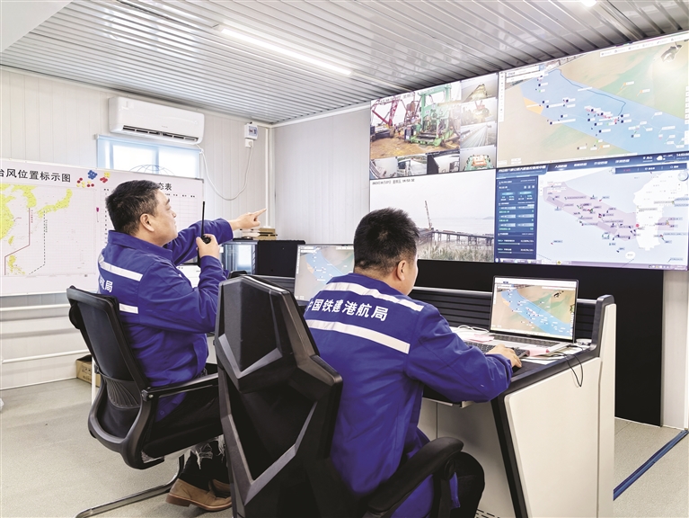 宁波舟山港六横公路大桥二期项目建设正酣,施工单位中国铁建港航局日前建成了一套由“电子眼、机械手、智慧大脑”组成的数字化集成调度系统,该系统由8台全景摄像机、20台枪机、9台服务器等设备组成,可实现智能分析数据同步对接上传,使涉水工程的安全作业更有保障。