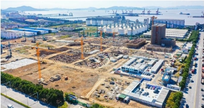 10月31日,定海工业园区,华康股份年产200万吨玉米深加工健康食品配料项目(一期)正加速推进,山梨醇车间、配电房、玉米淀粉车间开始主体结构建设。该项目建成投产后,年产值预计在50亿元以上,将为舟山粮食产业园提能升级、延伸产业链、服务长三角地区提供重要支撑。摄影 记者 张磊