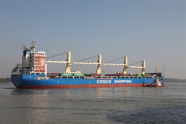 11月1日,“天惠”轮货船驶离张家港港 新华社 发(何海洋 摄)