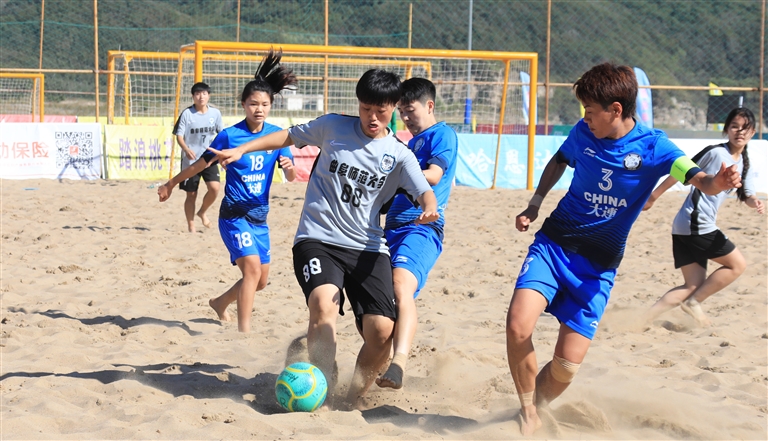 本报讯 昨天,国家A级赛事——2023全国女子沙滩足球锦标赛在我市火热开赛。来自全国多个高校、俱乐部的12支球队,齐聚普陀桃花岛塔湾金沙景区沙滩足(排)球运动基地,开展一场别样的“沙”场角逐。足坛名宿孙继海受邀来到赛场观战。