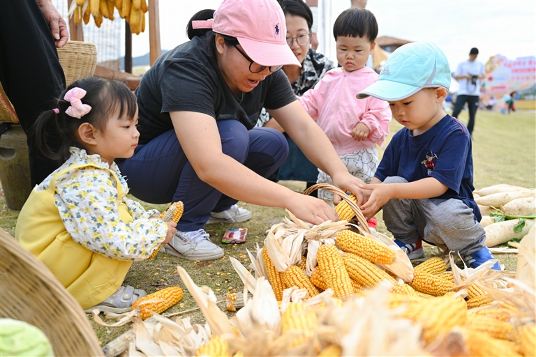 汉服祈福、歌舞表演、互动游戏……在田野间,一个个精彩的节目轮番上演。现场的“书丰年”活动,50组亲子家庭现场创作百米长的秋收画作,孩子们还体验了收获的乐趣(见图);“展丰年”活动中,稻田汉服秀、“展茅好声音”和田间表演秀等精彩纷呈。“喜丰年”活动中,秋收展览、游园等更是赚足了游客的眼球。此外,同步推出的乡创未来直播、青年人才交友、丰收营地篝火晚会等多元化系列活动,也助兴其中。