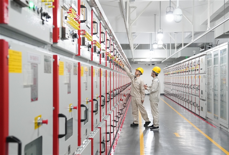 11月4日,国网上海青浦供电公司工作人员在变电站内巡视。