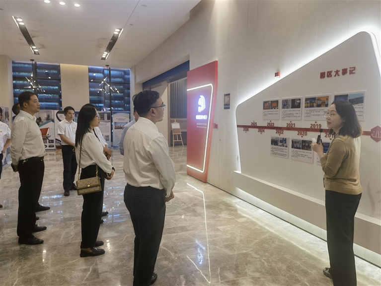 在讲解员的带领下,大家先后学习观摩园区大事记、党建模式、组织架构、三平台体系和三创新载体等党建文化墙以及细胞产业园区。