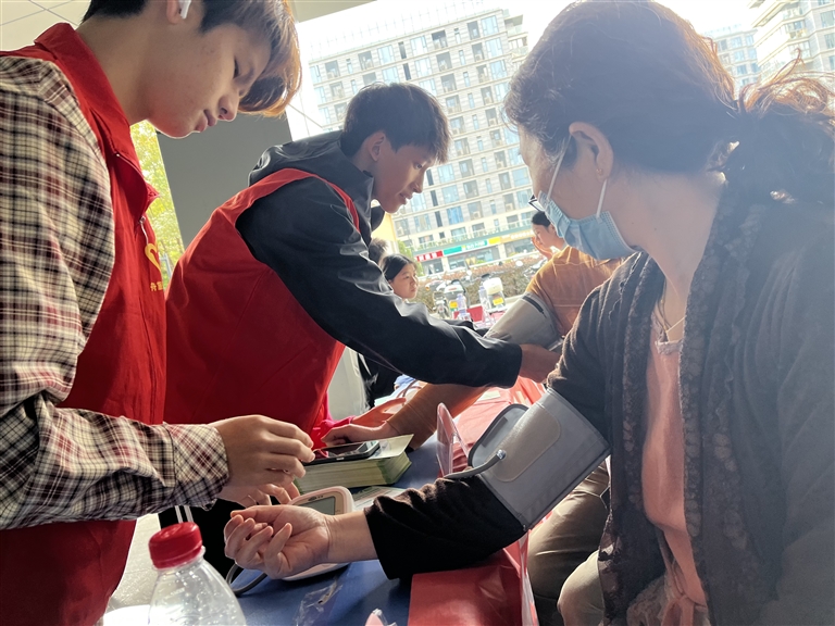 11月6日,新区旅游与健康职业学院“社区老人服务小队”走进普陀区东港街道文康社区,为老人开展测血压、推拿等志愿服务活动,并为部分老人提出健康方案,开展健康知识讲座,通过问卷调研、录制科普短视频介绍科学养生饮食知识,为社区老人送去温暖和关爱。近年来,新区旅游与健康职业学院坚持把学生志愿服务融入社会治理,努力为群众平安幸福加码。摄影 通讯员 郑永骥 陆素静
