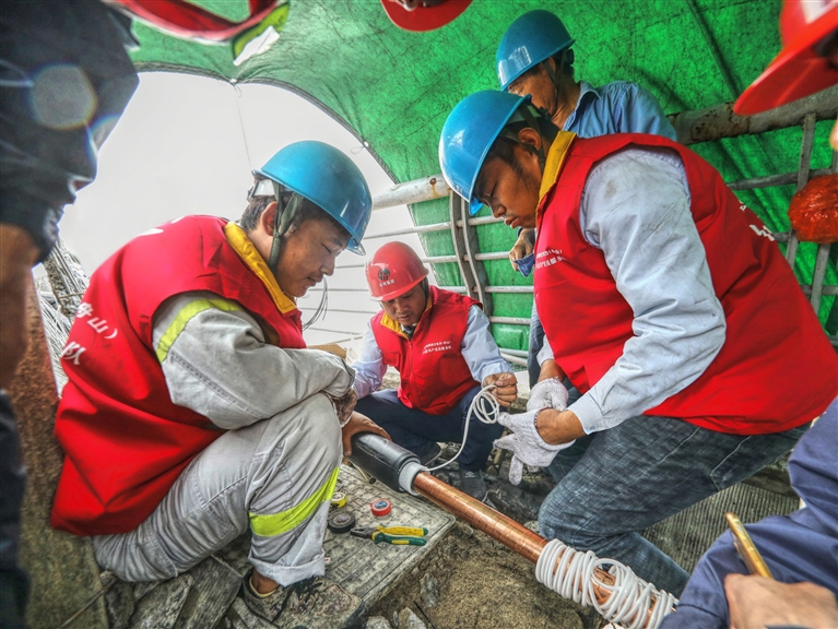 “在集团领导下,在兄弟单位配合下,我们用5个月时间完成了全国体量最大的随桥电缆敷设、安装任务。”启明安装公司总经理严安军介绍,随桥电缆整体装设电缆伸缩补偿装置40套,电缆敷设钢平台构件总数达29万件,石墨烯防腐涂装面积约20万平方米,相当于500个篮球场的面积。