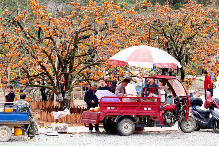 11月12日,游客在宁德市古田县利洋村柿子园购买柿子。
