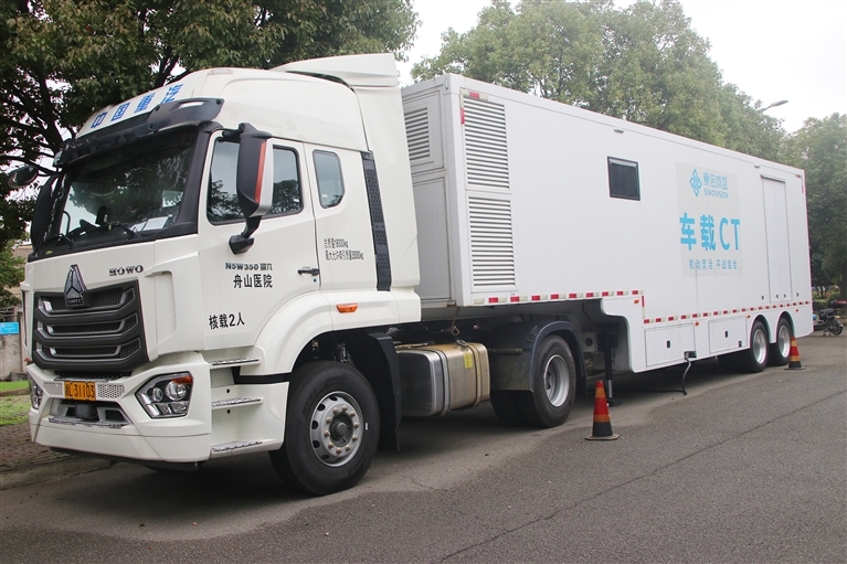11月12日上午,舟山医院组织医疗力量到普陀区六横镇龙山、沙浦新村开展义诊,这是舟医流动CT车首次开进六横岛。其间免费CT检查80多人,发现早期肺恶性肿瘤患者2例。摄影 通讯员 刘生国